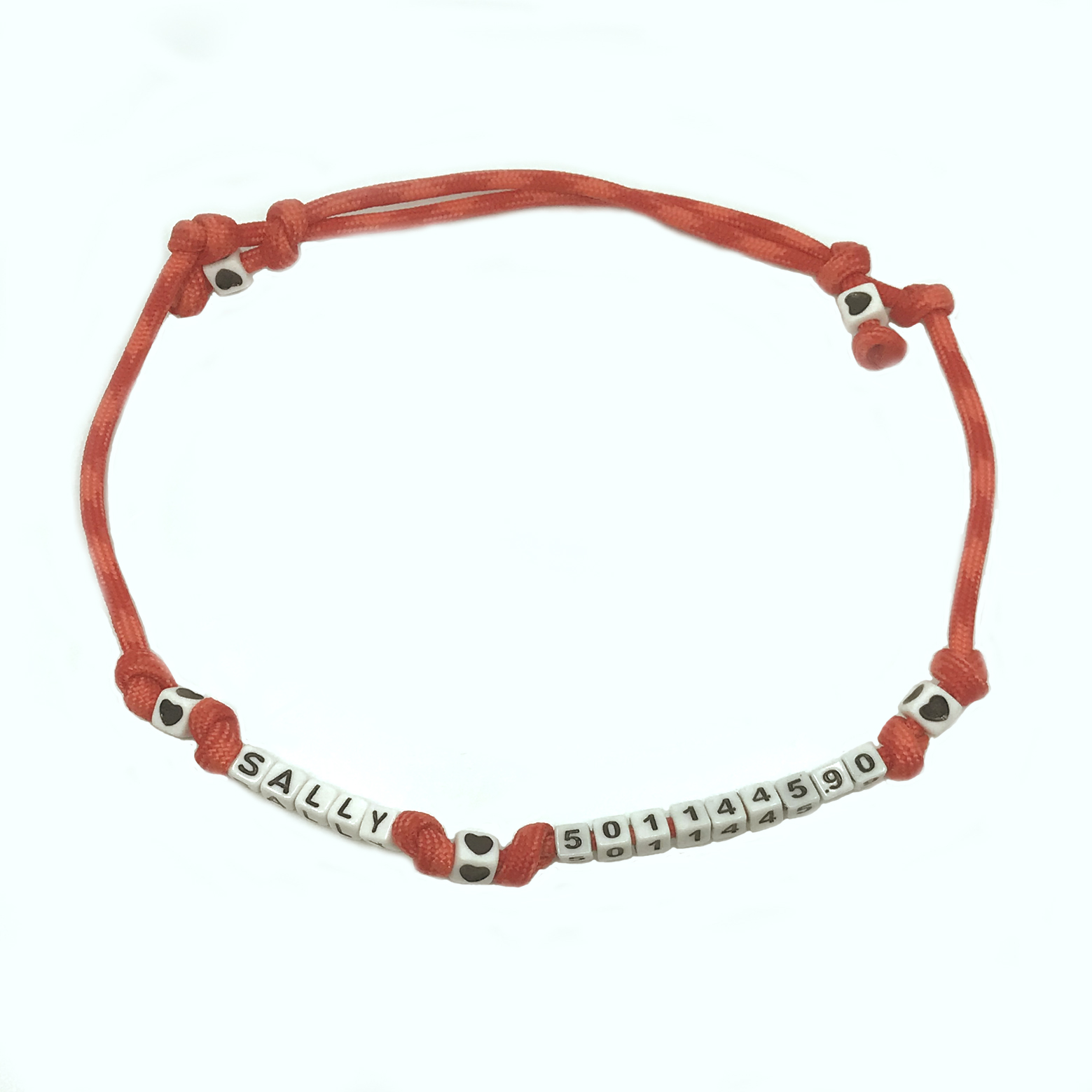 Przy zamówieniu prosimy o podanie obwodu szyi psa mierzonego tak jak do obroży, czyli z naszymi dwoma palcami oraz informacje, które mają zostać umieszczone za pomocą koralików na adresatce z cyframi i literkami.