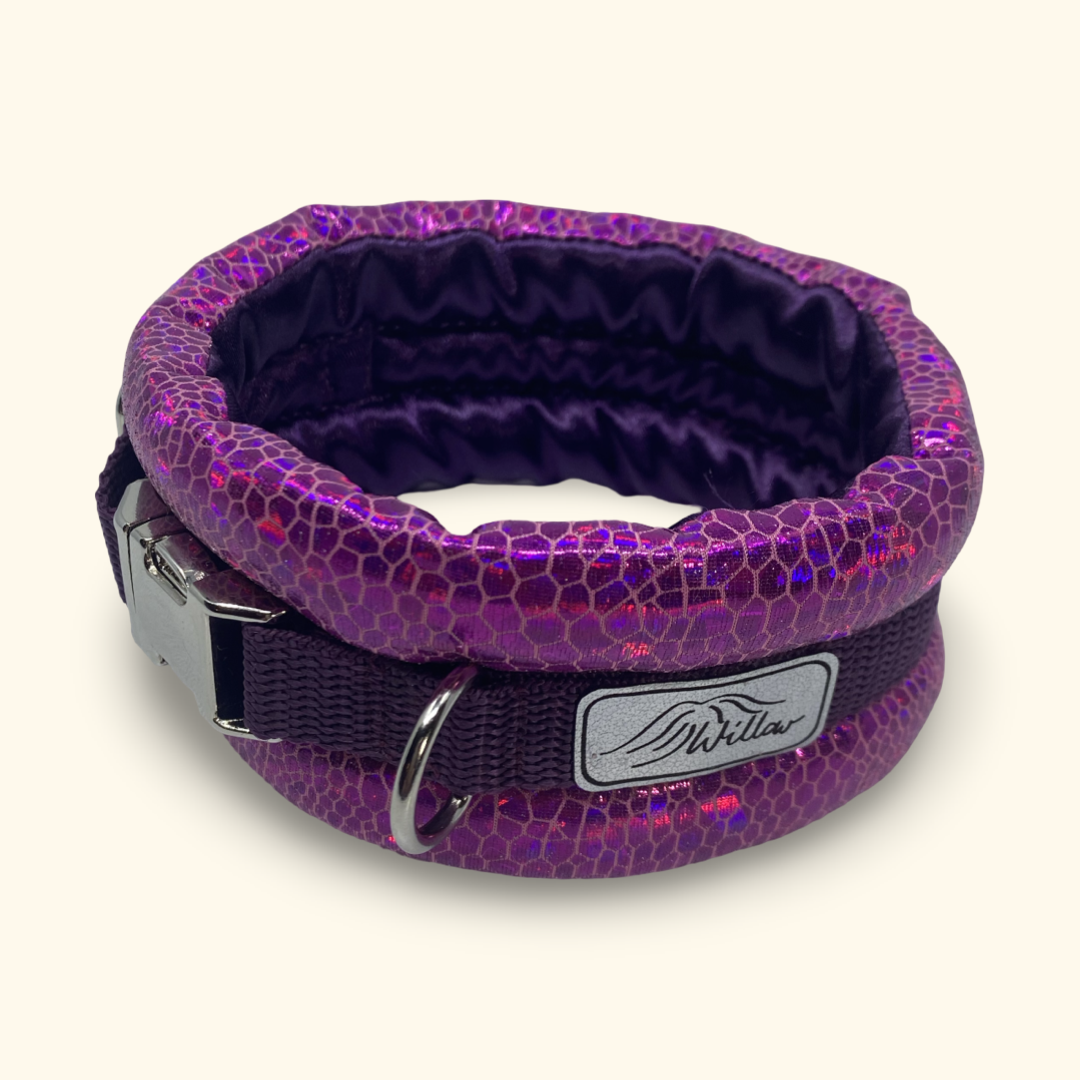 Ta elegancka obroża dla pudla zachwyca nie tylko swoją funkcjonalnością, ale też wyjątkowym wyglądem – intensywny kolor fuksji i efekt skóry węża w połączeniu ze srebrną klamrą tworzą luksusowy, ale zarazem lekki i komfortowy design. Obroża została zaprojektowana specjalnie dla psów o smukłej szyi i drobnej głowie – takich jak pudle, whippety czy charty. Dzięki szerokiej konstrukcji i miękkim materiałom zapewnia doskonałą ochronę i pełen komfort noszenia.