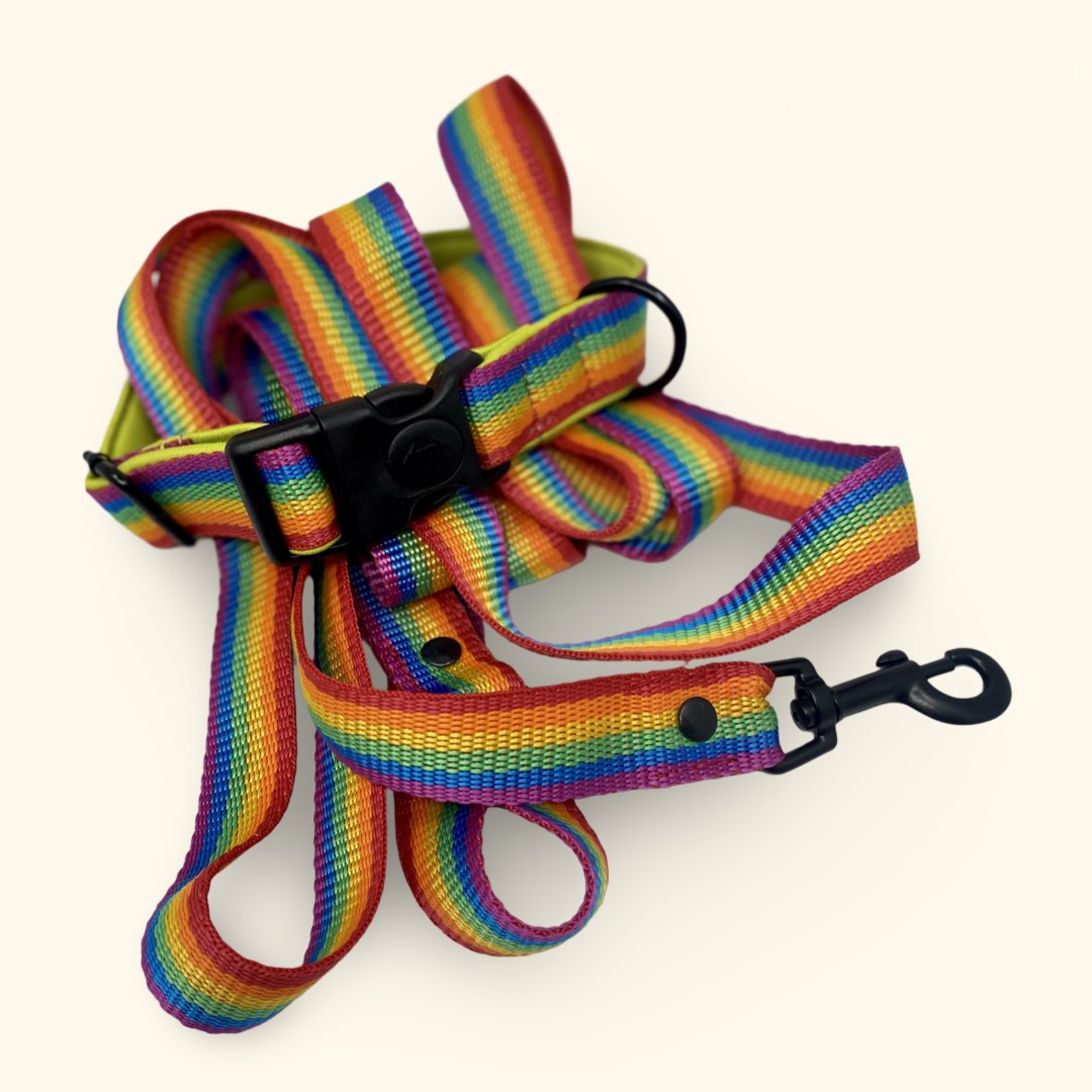 Komplet Obroża + Smycz „Tęcza” – Zestaw obroża i smycz dla psa gwarantujący komfort i styl