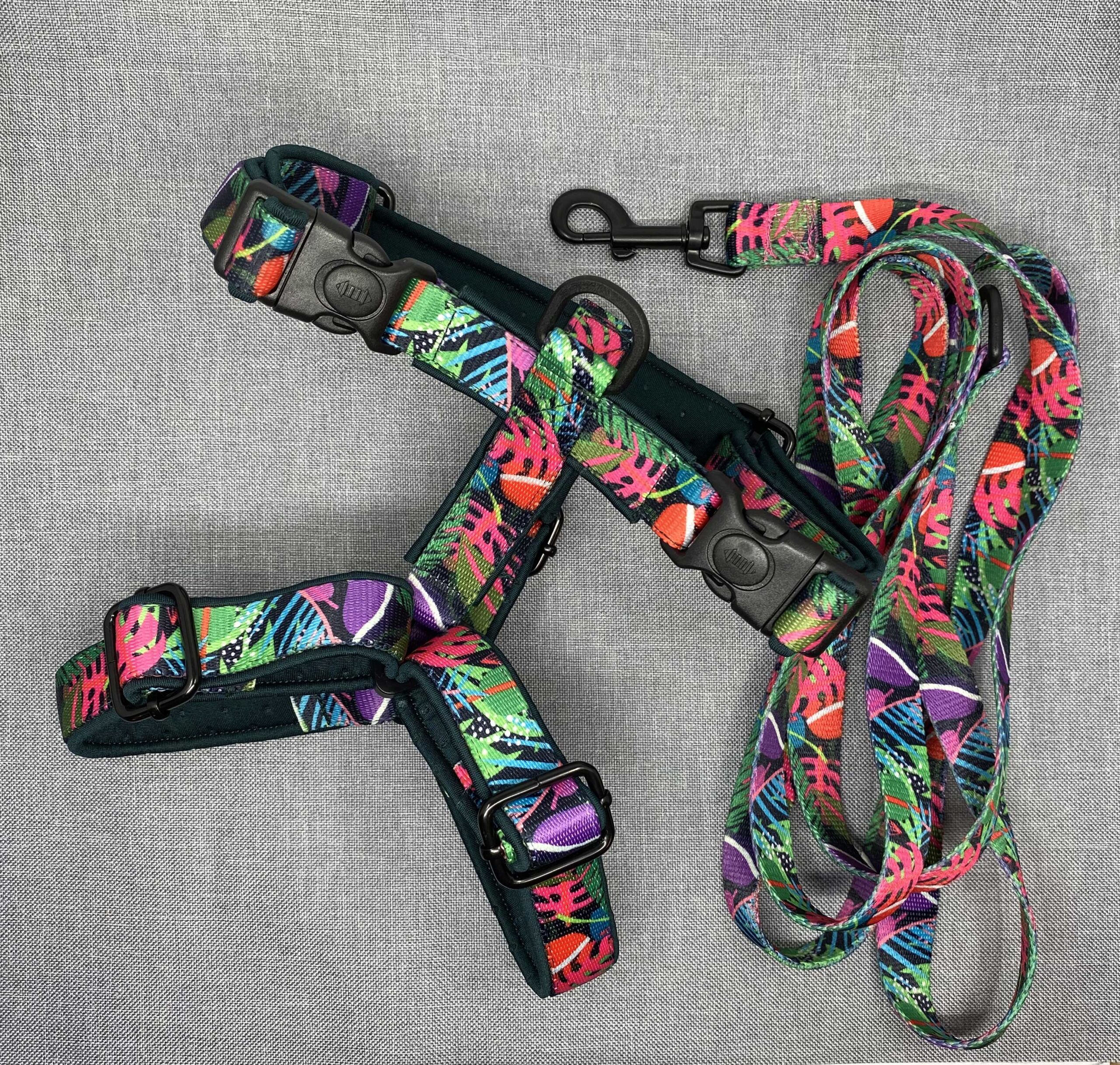KOMPLET SZELKI + SMYCZ TAŚMOWA „DŻUNGLA”