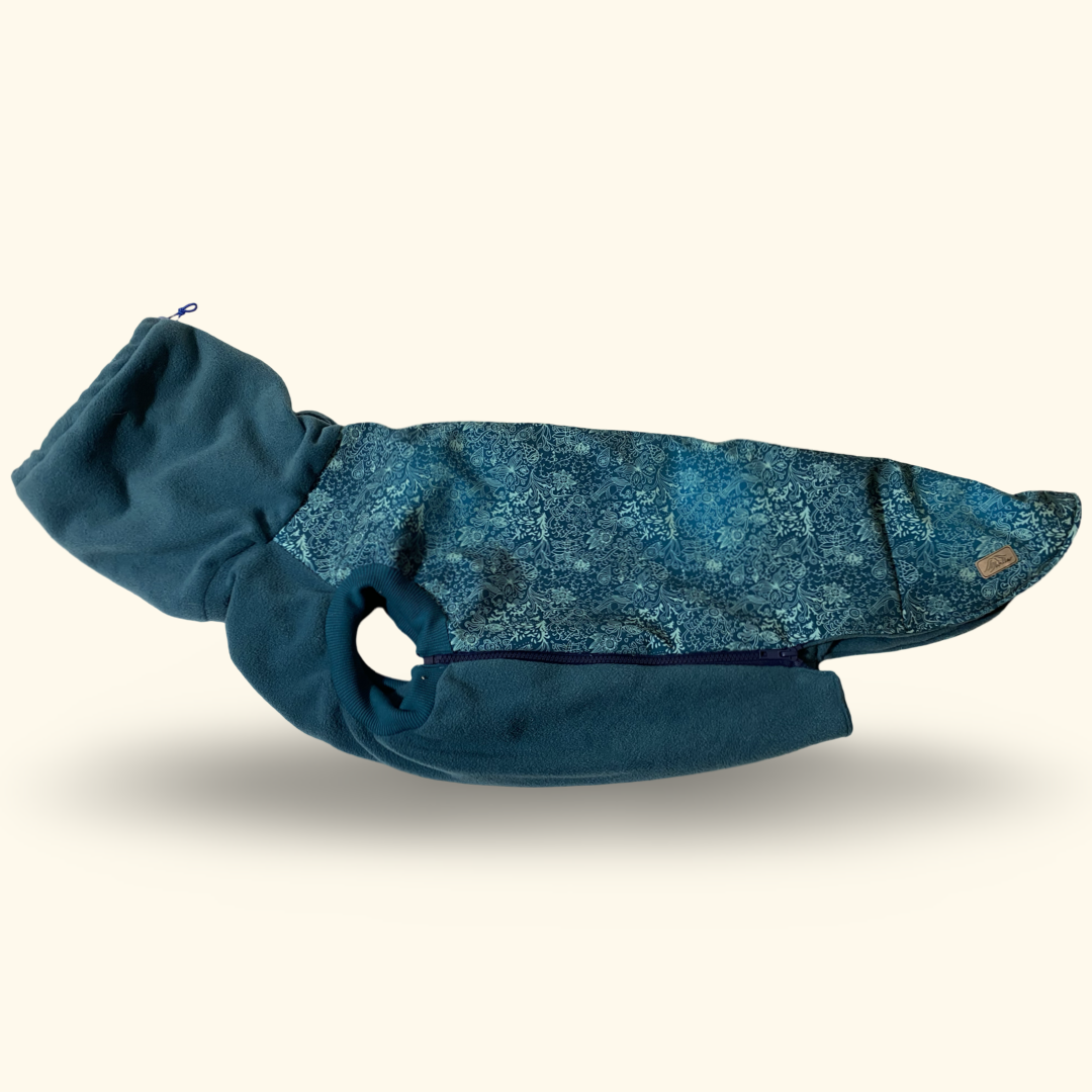 Kurteczka dla charta to wygodny do biegania kubraczek wykonany z wodoodpornego i „oddychającego” softshellu idealnego do sportowego charakteru tego wspaniałego psa. Zgodnie z potrzebami rasy, kurteczka posiada wysoki, polarowy ciepły golfik, jest odpowiednia wyprofilowana do sylwetki charta oraz posiada wygodne zapięcie na suwak. Ubranko wystarczy przełożyc przez głowę psa i jedną łapę, a następnie wygodnie zapiąć zamkiem rozdzielczym. Kurteczka jest dwuwarstwowa, dodatkowo docieplona, wodoodporna i wiatrochronna dzieki membranie softshellu.