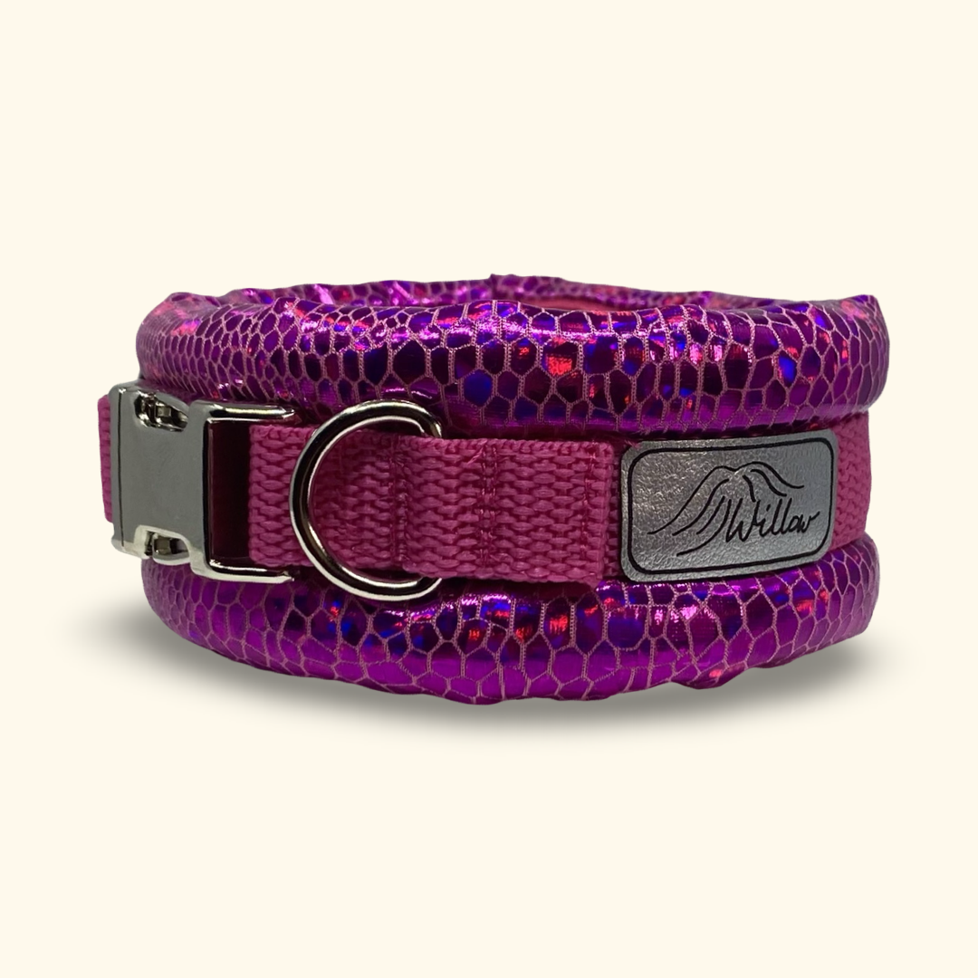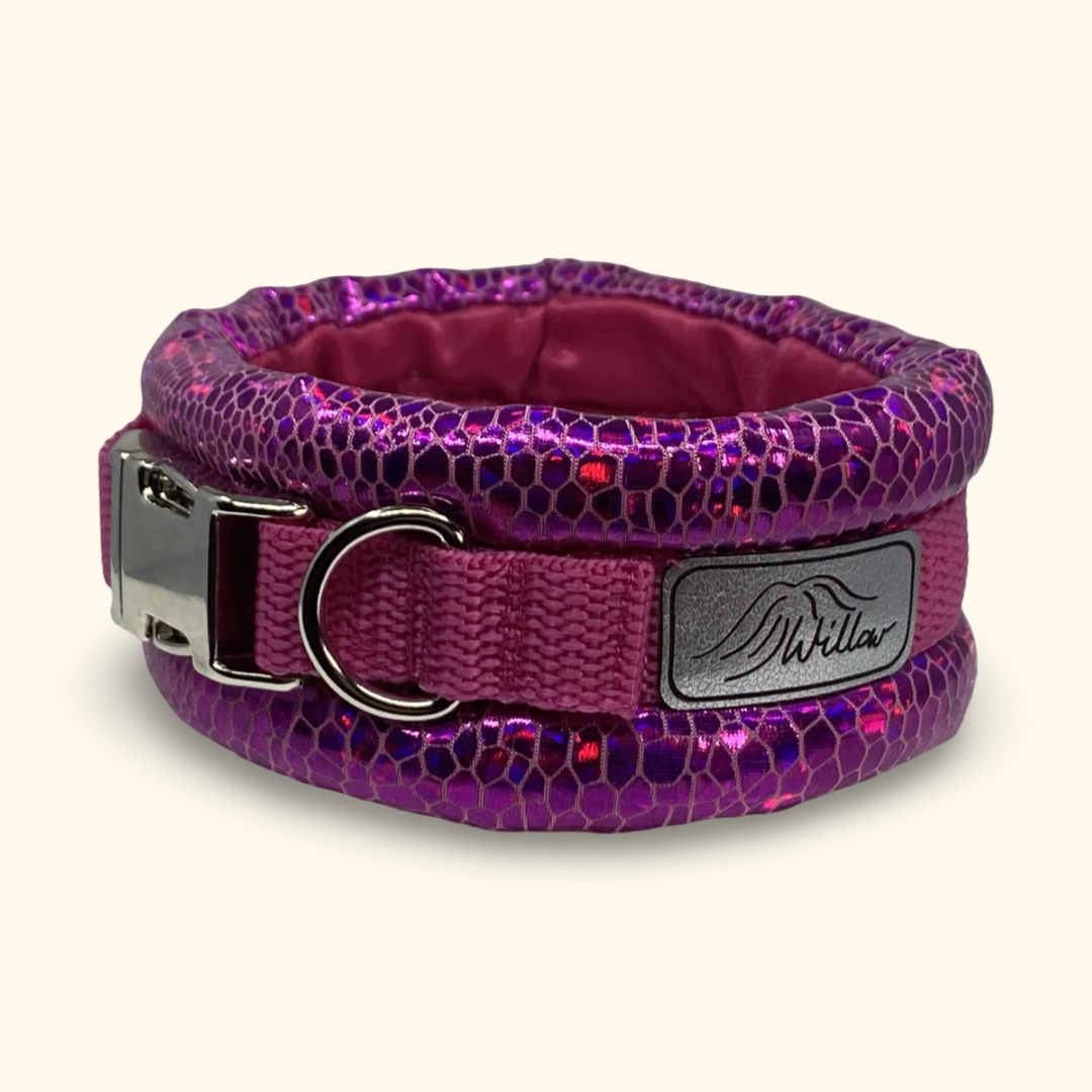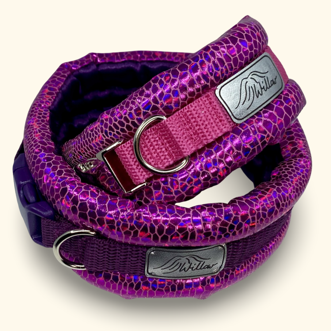 Wyróżniająca się obroża dla pudla „Excellent” w odcieniu fuksji i różu z holograficznym połyskiem to więcej niż modny dodatek. Zapewnia psu maksymalny komfort, chroni szyję i dodaje stylowego akcentu każdemu spacerowi.