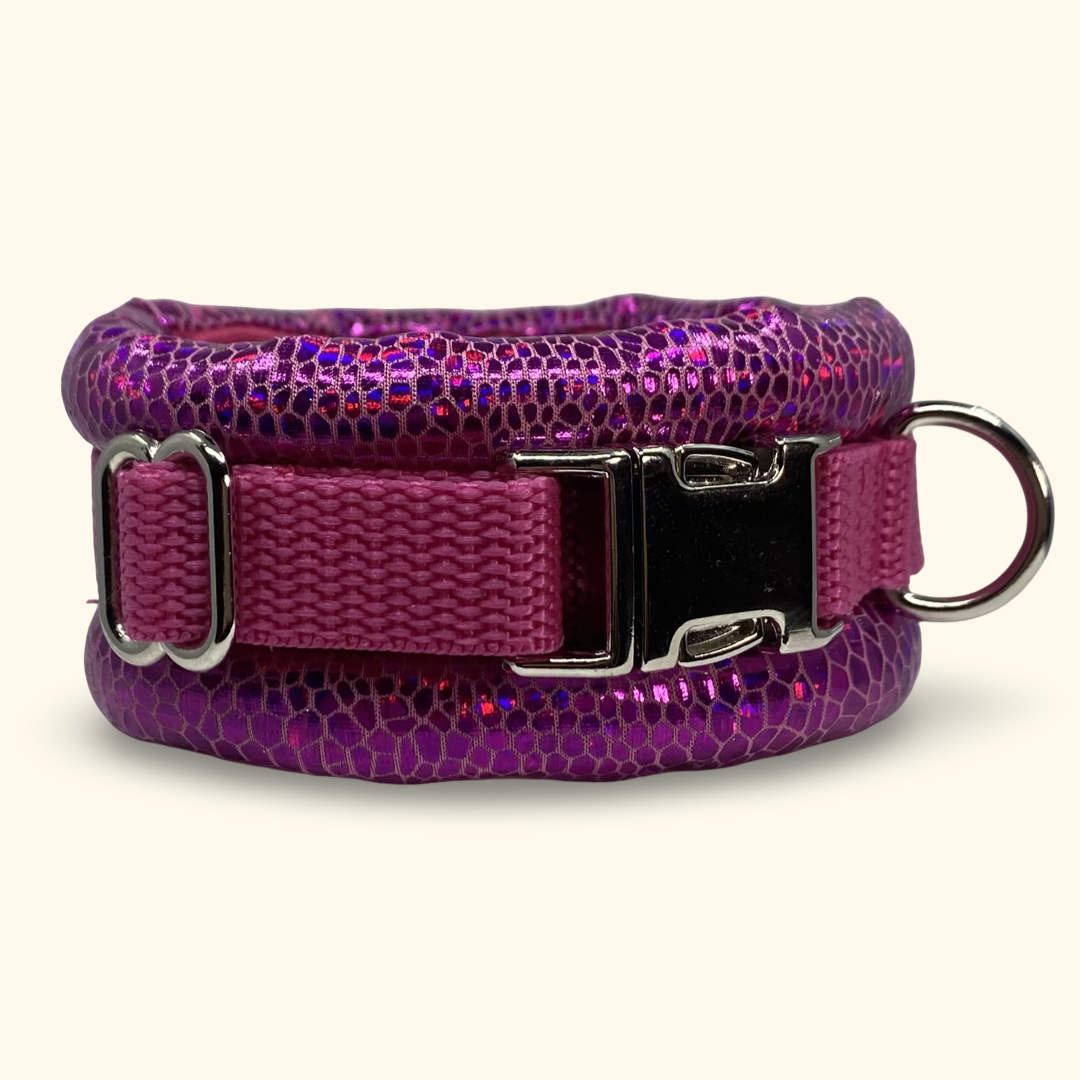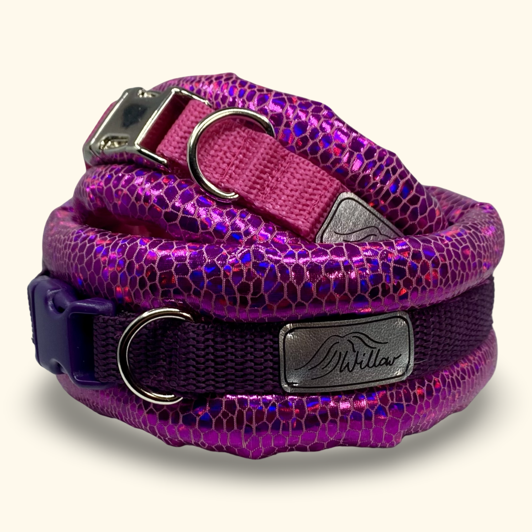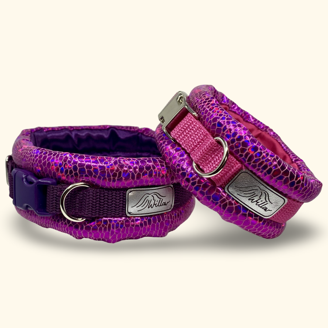 Wyróżniająca się obroża dla pudla „Excellent” w odcieniu fuksji i różu z holograficznym połyskiem to więcej niż modny dodatek. Zapewnia psu maksymalny komfort, chroni szyję i dodaje stylowego akcentu każdemu spacerowi.