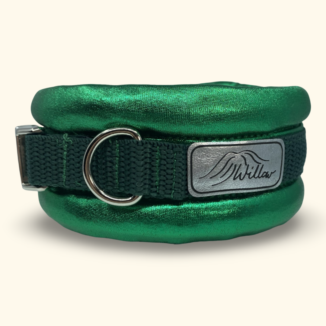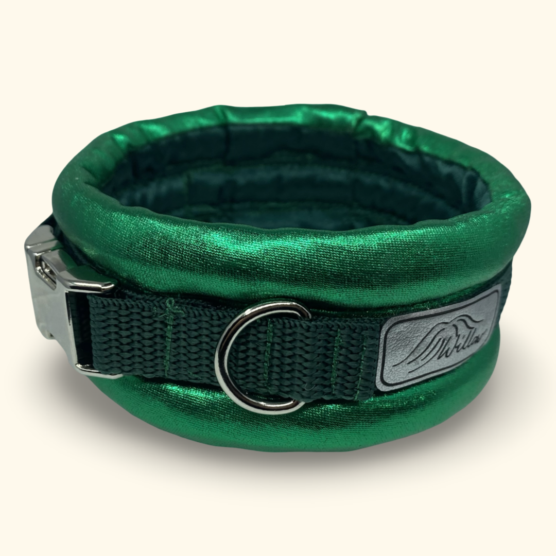 Szeroka, delikatna i stylowa – obroża dla pudla „Excellent” w kolorze zieleni ze srebrną klamrą została stworzona z myślą o psach o smukłych szyjach. Zapewnia idealne dopasowanie, wyjątkowy komfort i zdrowe wsparcie dla kręgosłupa szyjnego pupila.