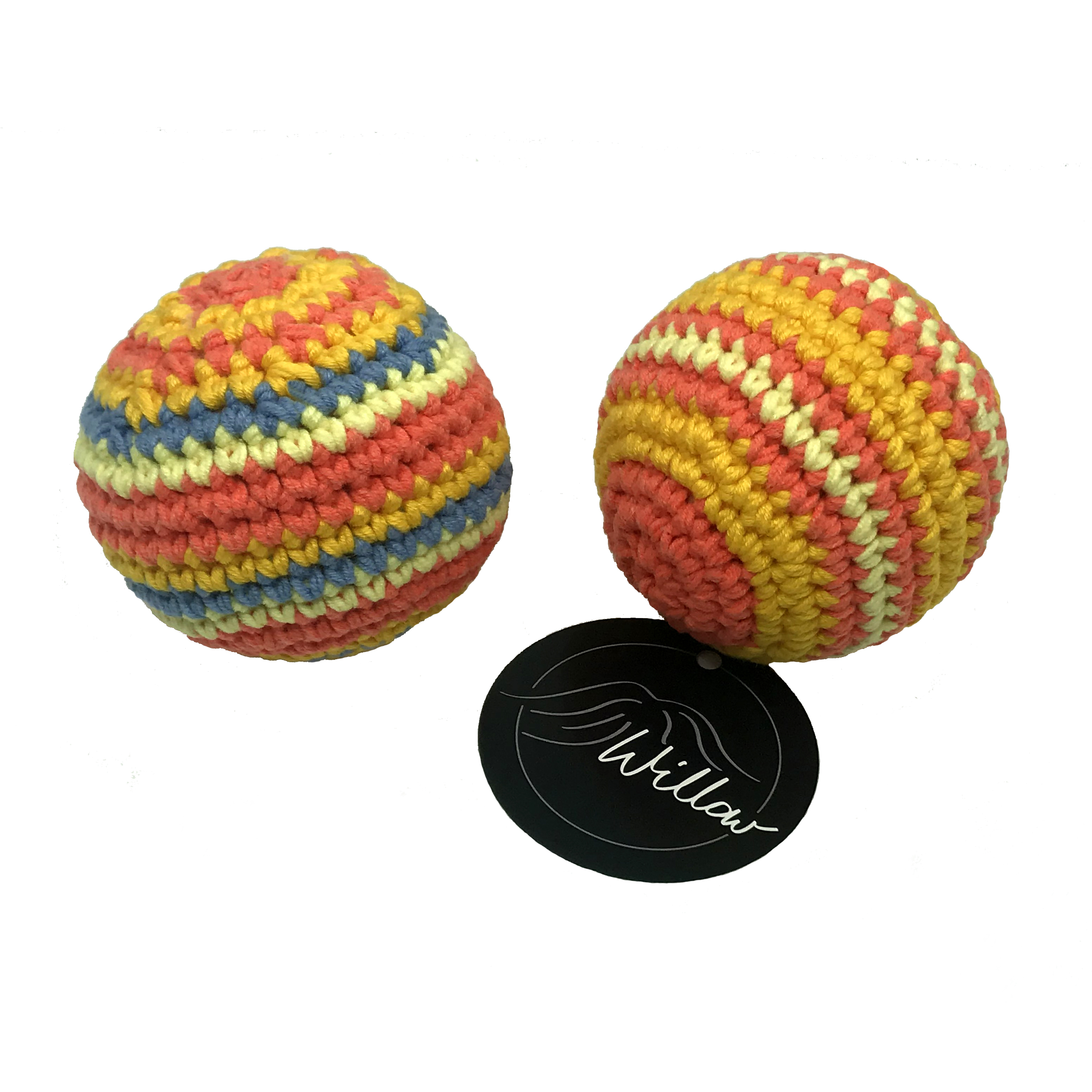 Dwie albo dla dwojga! Ręcznie wykonane szydełkowe, bawełniane, miękkie piłeczki dla pieska. Doskonałe do zabawy w domu; w przeciwieństwie do gumowych piłek, które mogą dokonać spustoszeń w pokoju. Mięciutkie, a zatem łatwa do przenoszenia w pyszczku. Ładny akcent dekoracyjny.