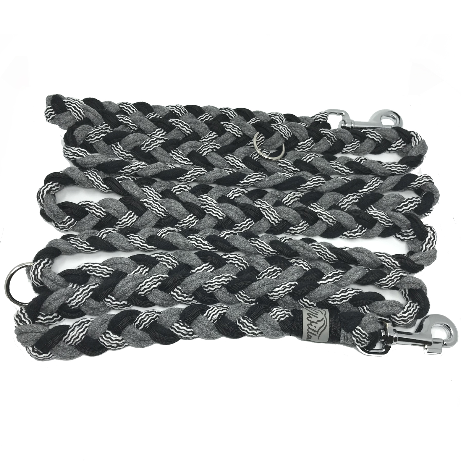 Ręcznie pleciona smycz dla psa. Wykonana z bawełnianego sznurka o średnicy 5 mm z poliestrowym rdzeniem. Jest wytrzymała, ale miękka i przyjemna w dotyku. Miło trzyma się ją w dłoni, w przeciwieństwie do linek ze sztucznego tworzywa. Zapleciona warkoczem z dwunastu sznurków, w tym z dwóch survivalowych, wytrzymałych do 250 kg linek PARACORDU. Nadaje się dla dużych psów.