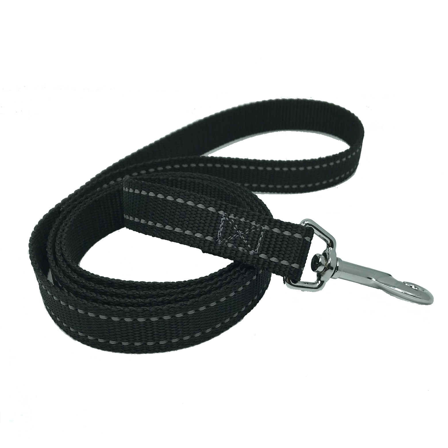 Wytrzymała smycz uszyta z taśmy nośnej o szerokości 2 cm. Wzór taśmy pasuje do innych produktów, szelek, obroży i pasów do auta.