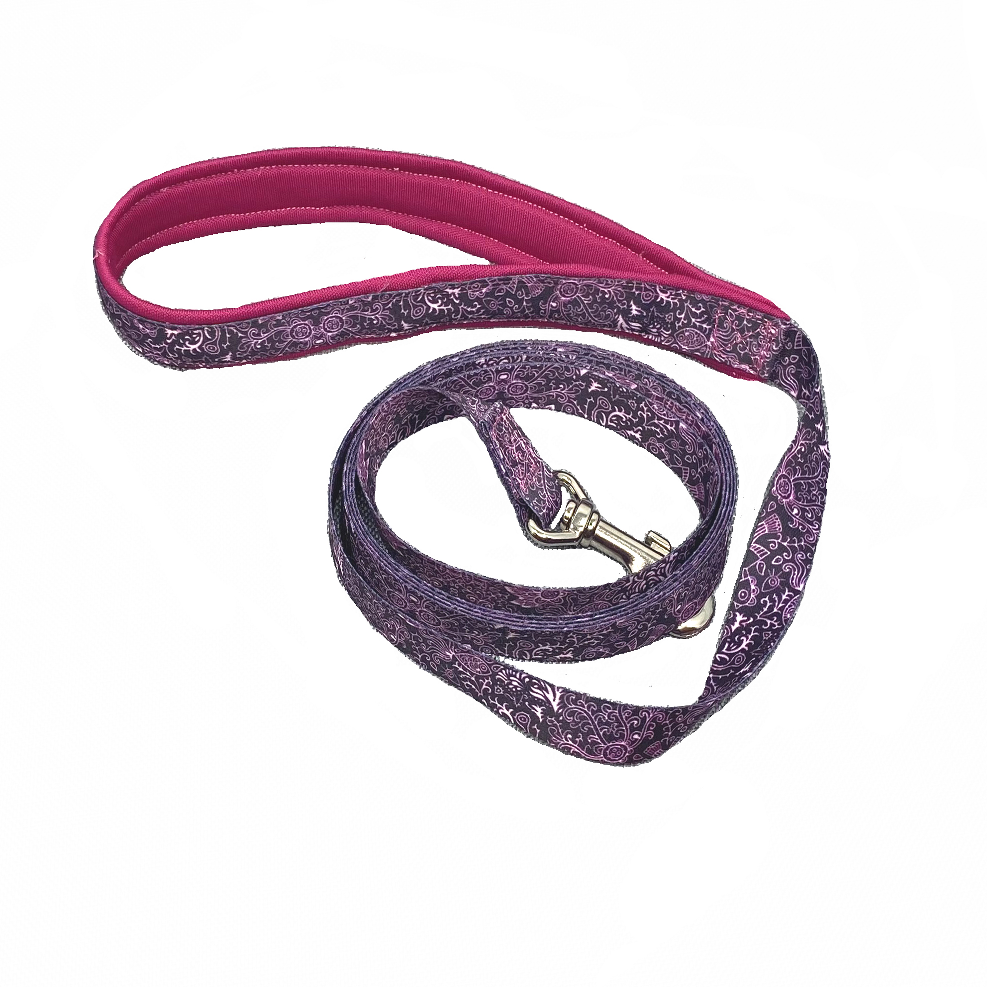 Wytrzymała smycz uszyta z taśmy o firmowym wzorze „Aqua Willow” o szerokości 16 mm.