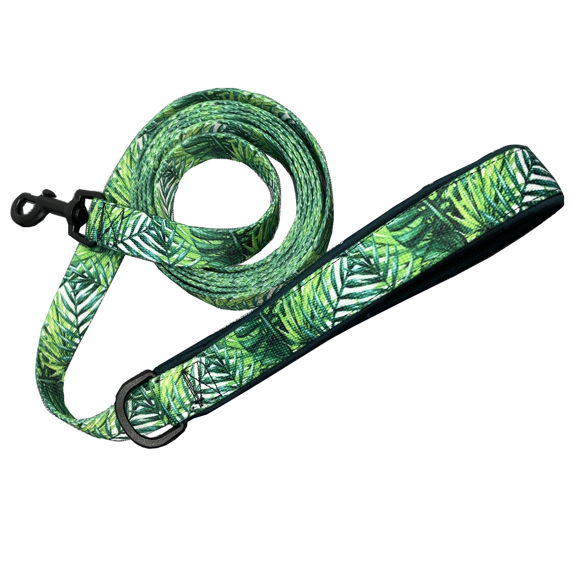 Wytrzymała smycz uszyta z taśmy nośnej o szerokości 2 cm. Rączkę podszyliśmy pianką neoprenową dla komfortu dłoni.  Wzór taśmy pasuje do innych naszych produktów, szelek, obroży i pasów do auta. Pod uchwytem znajduje się wszyte kółeczko, do którego można dokuipć etui na woreczki z tego samego wzoru.