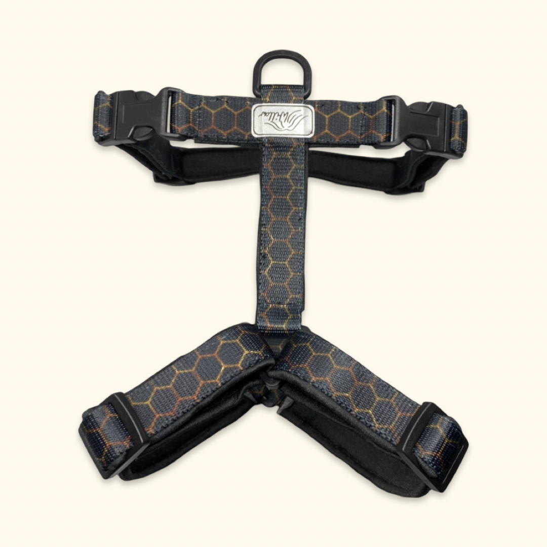 Szelki paskowe typu Guard, podszyte mięciutką pianką neoprenową, zapobiegającą obtarciom. Konstrukcja szelek rozkłada naprężenia tak, aby nie obciążać kręgosłupa psa oraz nie wykrzywiać stawów ani przednich łap.