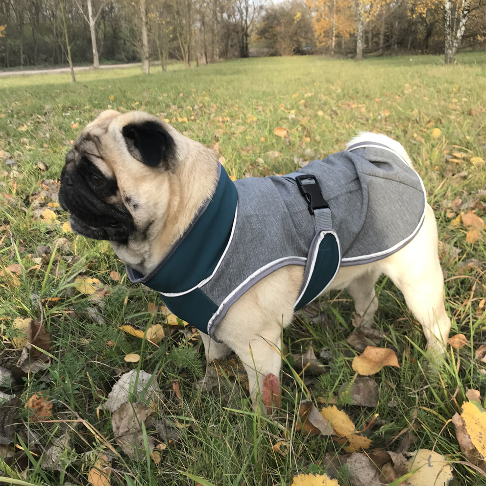 Płaszcz dla psa wykonany z  softshelu, tkaniny o wspaniałych właściwościach- lekka, ciepła, oddychająca, wodoodporna. Materiał posiada MEMBRANĘ i jest atestowany! Znany z nowoczesnej odzieży sportowej, znakomicie sprawdzi się w odzieży dla aktywnych psów.