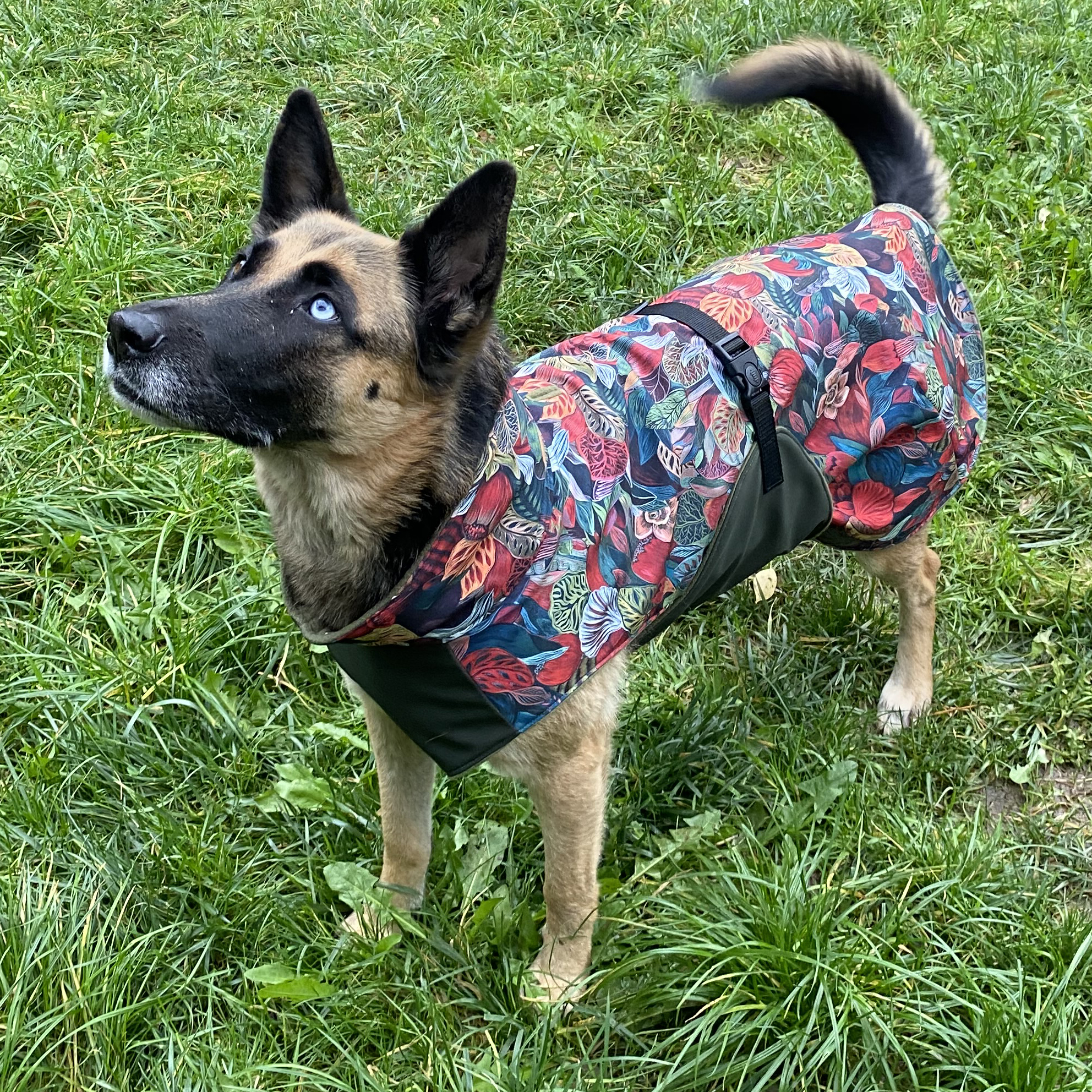 Płaszcz dla psa wykonany z  softshelu, tkaniny o wspaniałych właściwościach- lekka, ciepła, oddychająca, wodoodporna. Materiał posiada MEMBRANĘ i jest atestowany! Znany z nowoczesnej odzieży sportowej, znakomicie sprawdzi się w odzieży dla aktywnych psów.