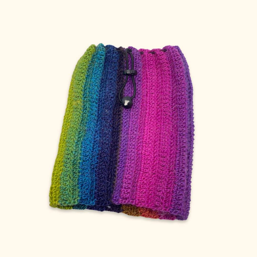 Wełniany, ręcznie robiony komin chroni uszy i szyję psa przed wiatrem i chłodem. Snood wykonany jest na szydełku z miękkiej i ciepłej mieszanki wełny z akrylem, nie podrażnia delikatnej skóry psa. Piesek się nie przegrzewa, a jest chroniony przed zimnem , a także śniegiem, gdyż w wełnę nie wsiąka zbyt szybko wilgoć.  Komin jest na górze ściągany gumeczką z regulatorem, co pozwala dopasować komin do obwodu głowy psa. Ponadto komin nie zsuwa się.