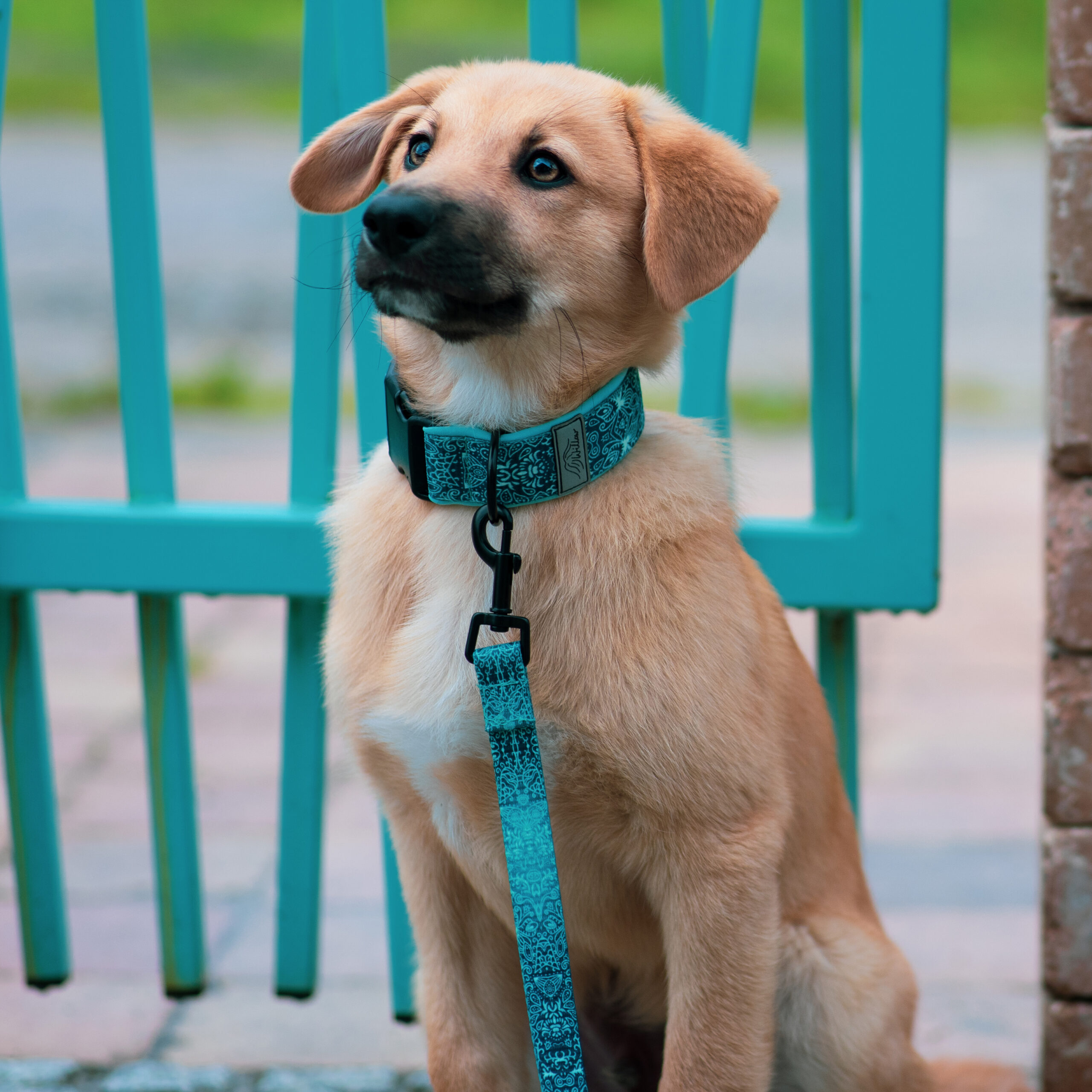 • Komplet akcesoriów dla psa z unikalnym, turkusowym wzorem „Aqua Willow turkus”